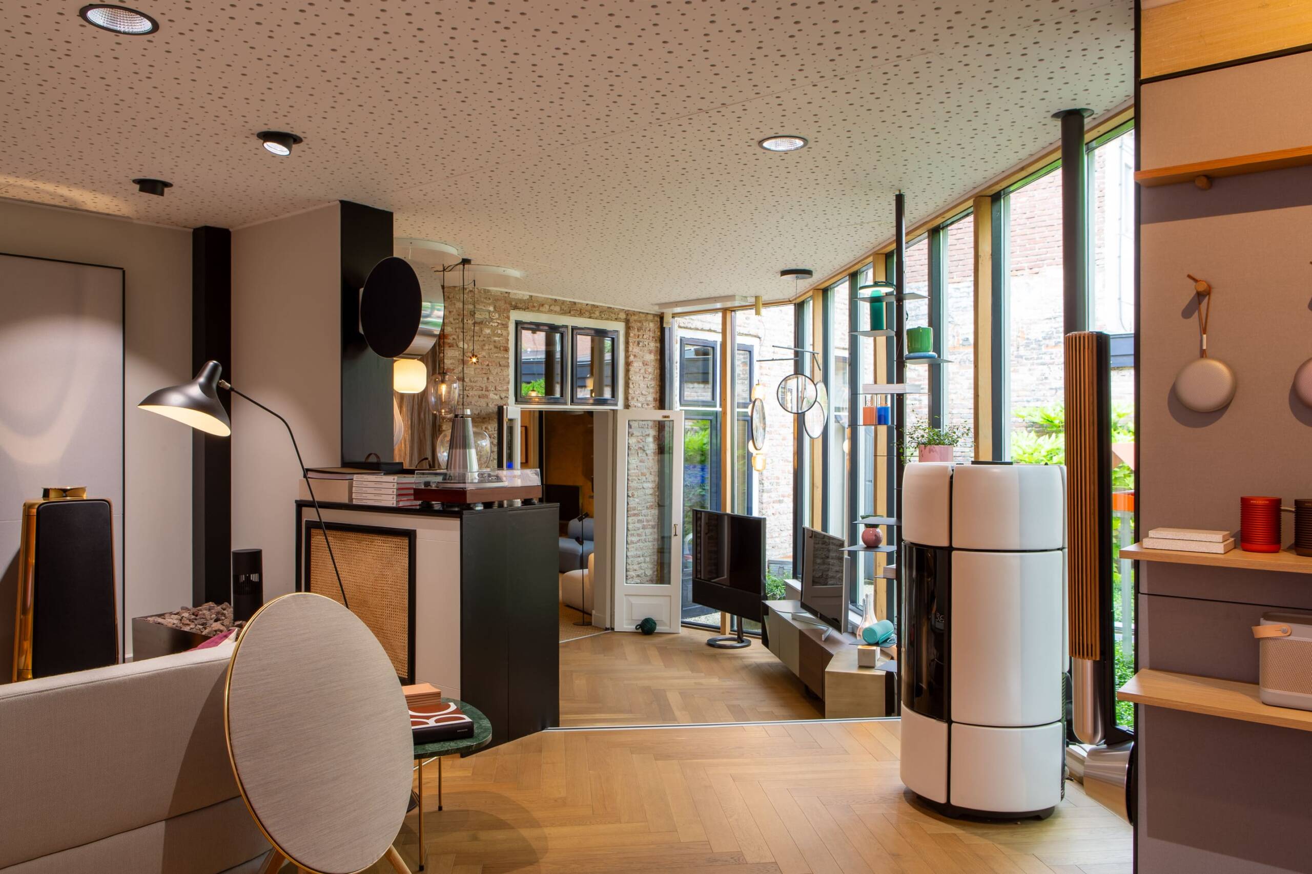 Onze showroom is geen traditionele winkel, maar een huiselijke beleving. Je wandelt door verschillende woonruimtes waarin wij laten zien en horen hoe beeld en geluid naadloos opgaan in een interieur. In onze koffiebar ontmoet je regelmatig Anneke, terwijl Ramon en het team je begeleid naar de perfecte oplossing voor je woonwensen.