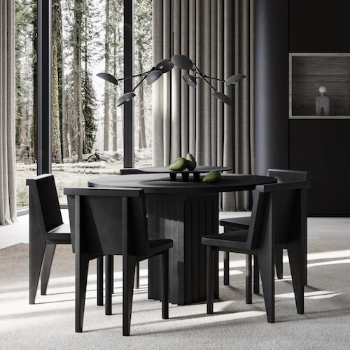 Geïnspireerd door het brutalisme* van het midden van de 20e eeuw, omvat de Brutus-collectie twee verschillende soorten eetkamerstoelen, een loungestoel, een kruk en een salontafel. Deze zijn gegoten in lichtgewicht vezelbeton, wat zorgt voor een unieke oppervlaktestructuur en verhoogde mobiliteit. Elk stuk is met de hand geschilderd om een getextureerd, uniek oppervlak te creëren