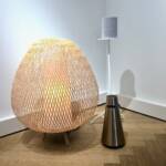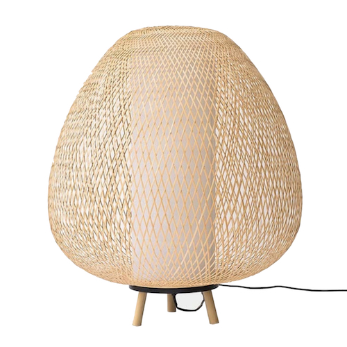 De Twiggy Egg vloerlamp is een door ambachtslieden handgemaakte lamp van gevlochten bamboe en papier