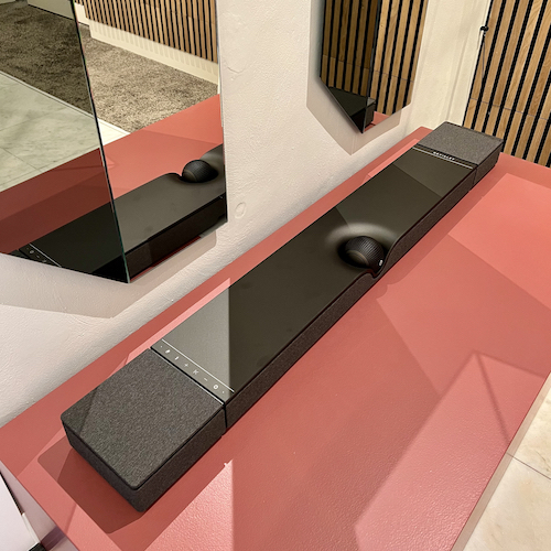 De Dione, met Devialet Intelligent Processor skills, een bandwijdte van 30Hz tot 21kHz en 950 Watt aan vermogen voor een impact van 101 dB is eigenlijk gewoon een Phantom in het jasje van een soundbar. Maar dan voorzien van room calibration scan om de weergave aan te passen aan de ruimte, flexibele plaatsing (horizontaal wegleggen of verticaal ophangen), en de ORB central speaker (dat fraaie golfballetje in het midden inderdaad) – die voorzien is van één actieve en twee passieve drivers en flexibel te draaien is voor de juiste positionering (afhankelijk van horizontale of verticale plaatsing van de Dione).